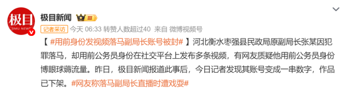 正观新闻在评论中表示,他做短视频账号本质上并不违法,但问题是,他还能不能用原公务员的身份继续行事?