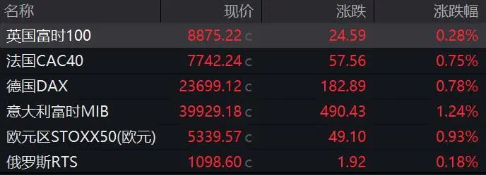 隔夜欧美股市集体走高,中概股大涨。黄金跳水。